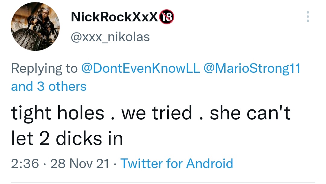 Analvids is bubble in which the 30 year old virgins from their forum heat up the exploitation of the girls by grotesque demands. Look into her thread: They demanded after the first shot that she, a 18 year old 1,50m small girl gets DAP/TAP by 5+ black dicks ... (WTF) ... and Nick & Co. try to exploit her as fast as it is possible by not leaving her time to grow into that business but squeeze her out as long as she complies to take part in that.pieter wrote: ↑Thu Dec 02, 2021 3:05 pm