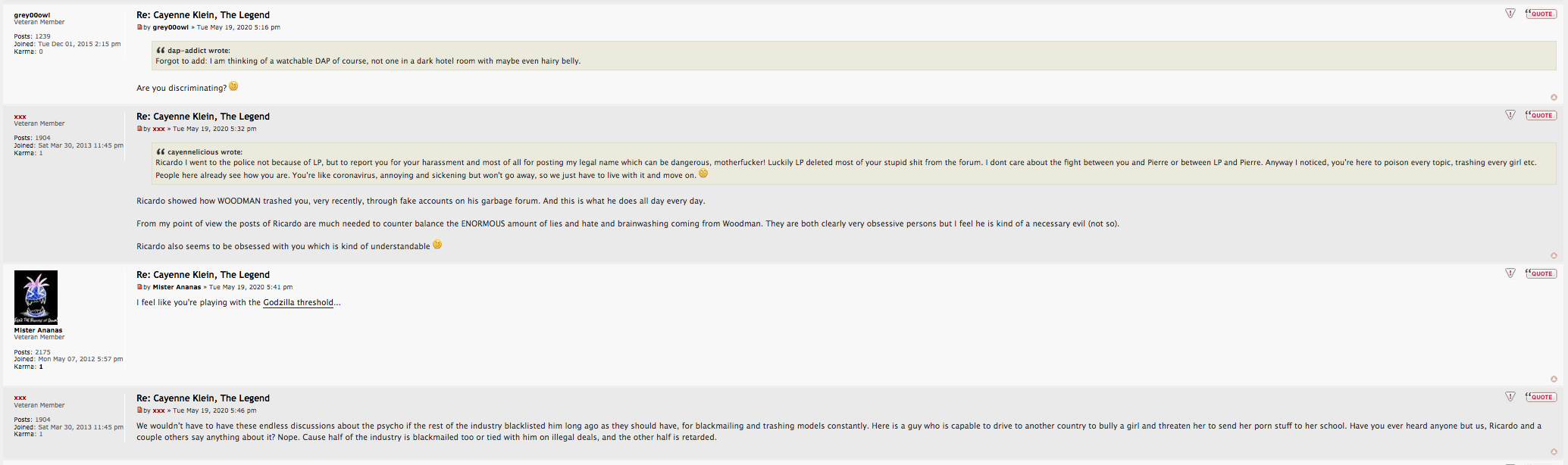 and best of the best, I'm regularly accused by Legal Porno to blackmail some girls ( which is not true ) but they have no problem to let Ricardo do it to Cayenne in live on their forum !!!