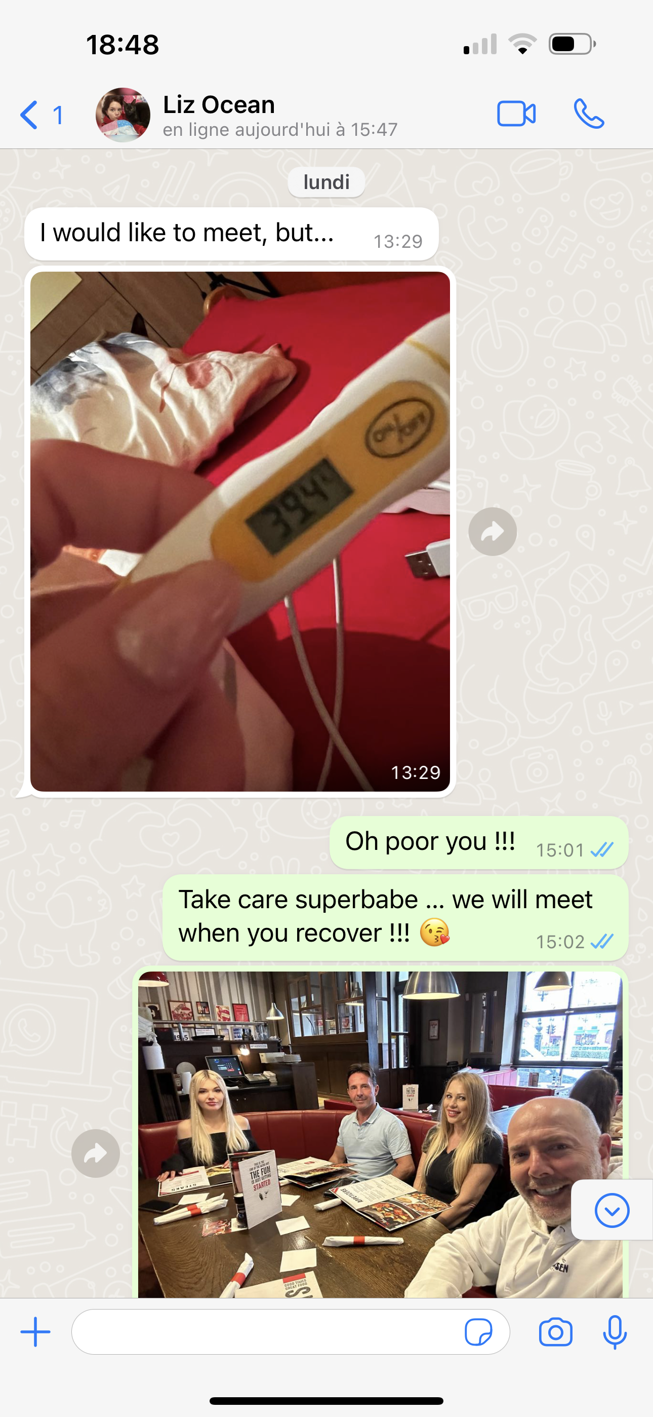 Mais on s'est parlé aujourd'hui ... elle a été très malade cette semaine avec presque 40 de fièvre la pauvre petite poupée.
