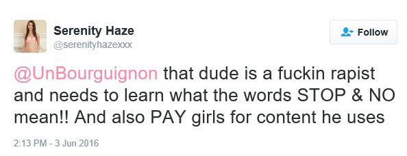 Her agency doesn't want anything to do with this mess (because they know she signed the release and got paid and can't do anything about it) so now she's trying to get a lawyer to clean up her stupidity...good luck! I can't believe 7500+ people are following this dumbass on Twitter...probably all Trump supporters