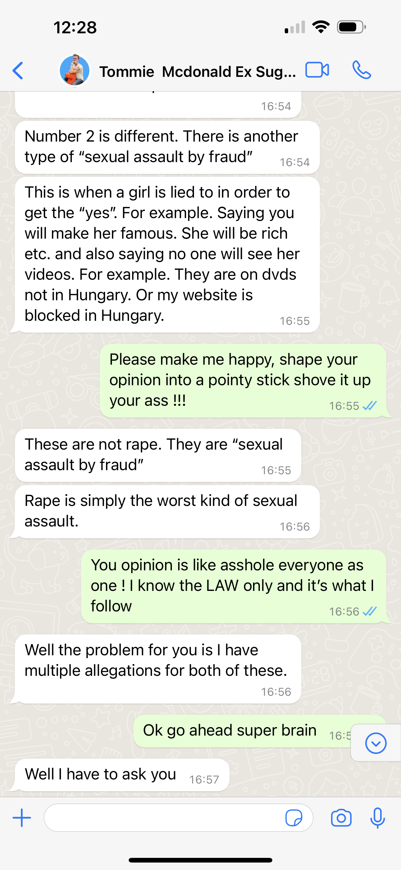Shona stayed silencious and supported the asshole having build this fake story of non consent. So what ever you can think, Kiara prooved her friendship and fought to say I was correct ...