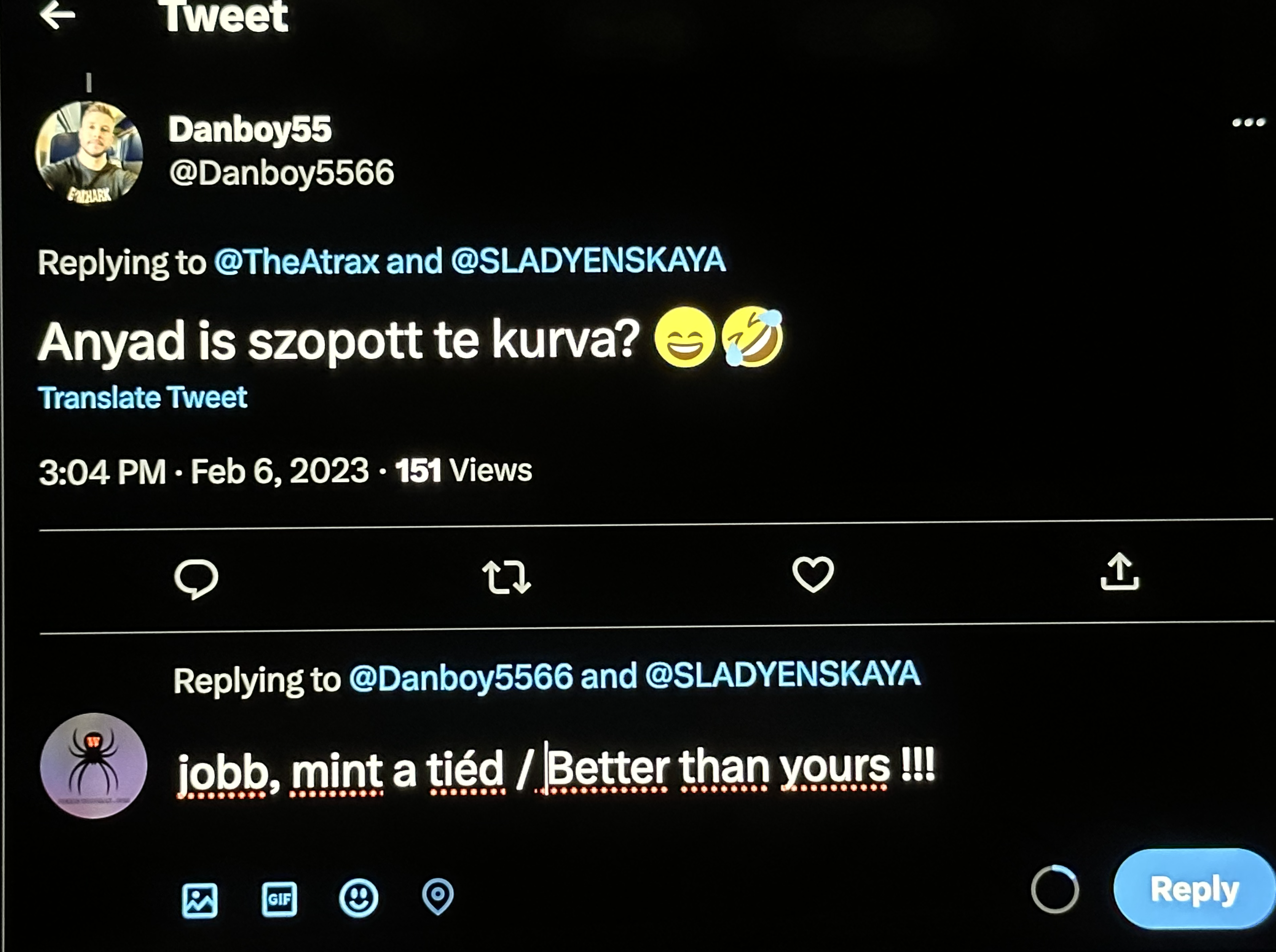 Anyway I am here to answer properly to the "nice" comments. This one asked me on Twitter if Sladyen's mom bitch suck good so he got an "honest" answer !!!