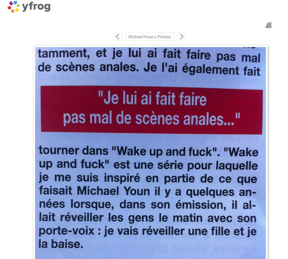 Pour ce qui est du "morning dick", c'est relié à un article de chez Dorcel Vision où il a repris mon interview !