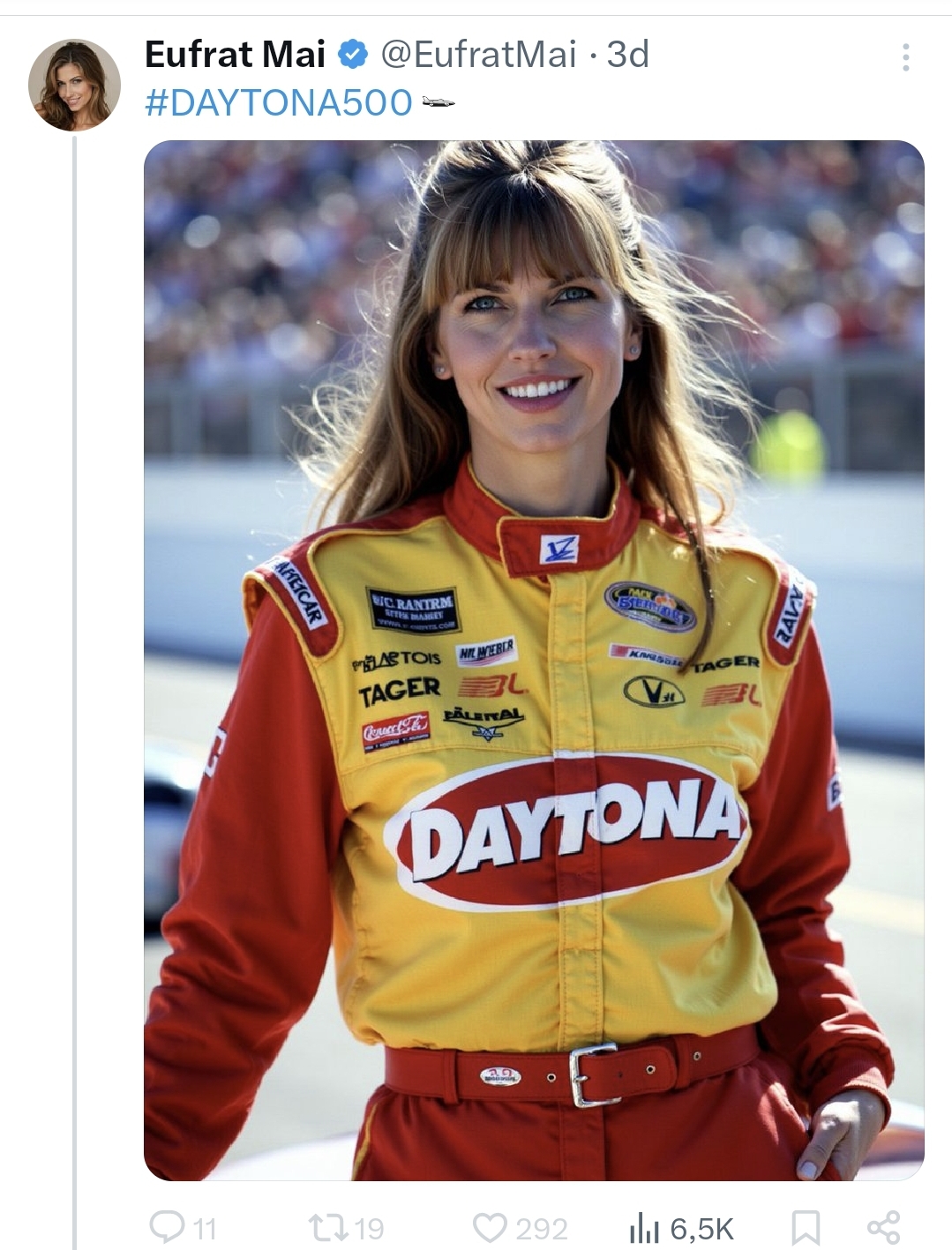 On Eufrat's X profile a tweet was posted alluding to some technical issues, but we have now been a week without news. Also on her X profile the same day several strange pictures of her supporting the Indianapolis 500 were uploaded, which really seem fake! And she left some answers to the American pornstars Jayden Cole and Sasha Grey!