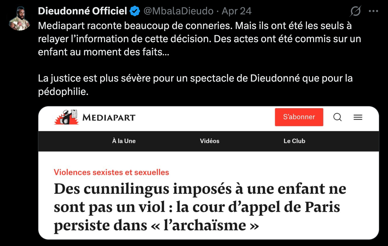 Et c'est forcement vrai parce qu'une ex-femme peu certe mentir sans problème, mais bon quand à la clef il y a 3 enfants qui rapportent la même histoire avec le chiot dans le micro-onde, et des séjours en hopitaux psychiatrique avec un suivi pour le traumatisme que cela a créé sur ses enfants, il y a peu de doute sur le fond de cette histoire, sans parler de tout un tas d'autres du passé donc ça commence à gravement puer la merde mais pas pour Von der Leyen, ce qui en dit long sur le mental de nos politiciens ...