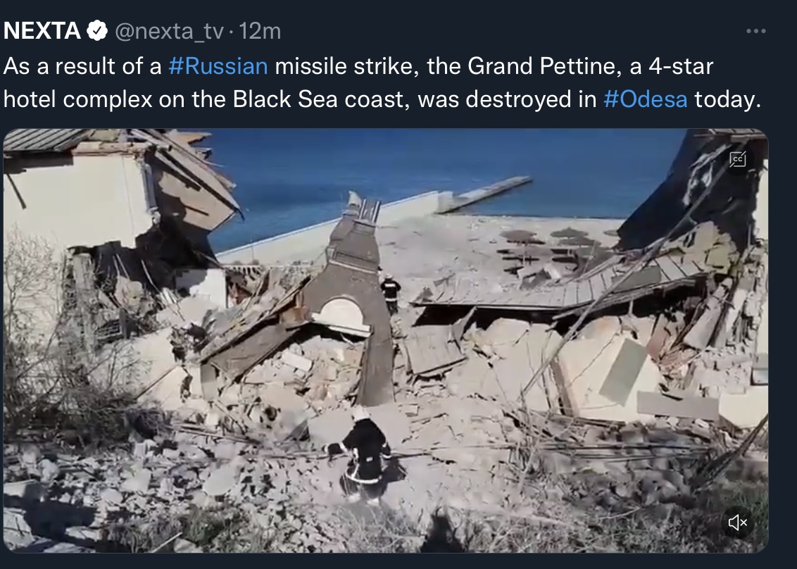 The Ministry of Defense of the Russian Federation reported that the Grande Pettine Hotel in Odessa, where foreign mercenaries were stationed, was targeted on May 08, 2022.