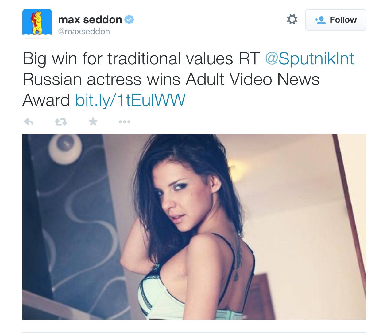 Sputnik, like its sister operation RT, is a Kremlin-run propaganda outlet targeting credulous Westerners. For reasons that defy explanation, it carried a story on this: