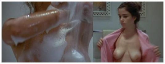 Kristina reminds me of another shy person, Elizabeth Berridge. At age 22 she was cast as Mozart's wife in the movie Amadeus. She is only 5' 2" tall, but her face and breasts are very similar to Kristina. At age 18, she starred in the classic Tobe Hooper horror film "Fun House". Here is a picture of her in the shower scene.