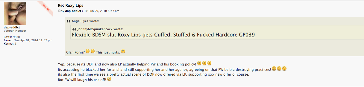 It's true it makes me laugh but he is wrong about me blocking her to go anywhere for anal as you can see on EBI she did various anal in other places even 21st and also a very strong fourthsome officialy for DDF but for sure coming out for LP soon with Mike Angelo, Ian Scott and Thomas Stone. So she wasn't blocked at all by me like these stupid people said on their forum !!!