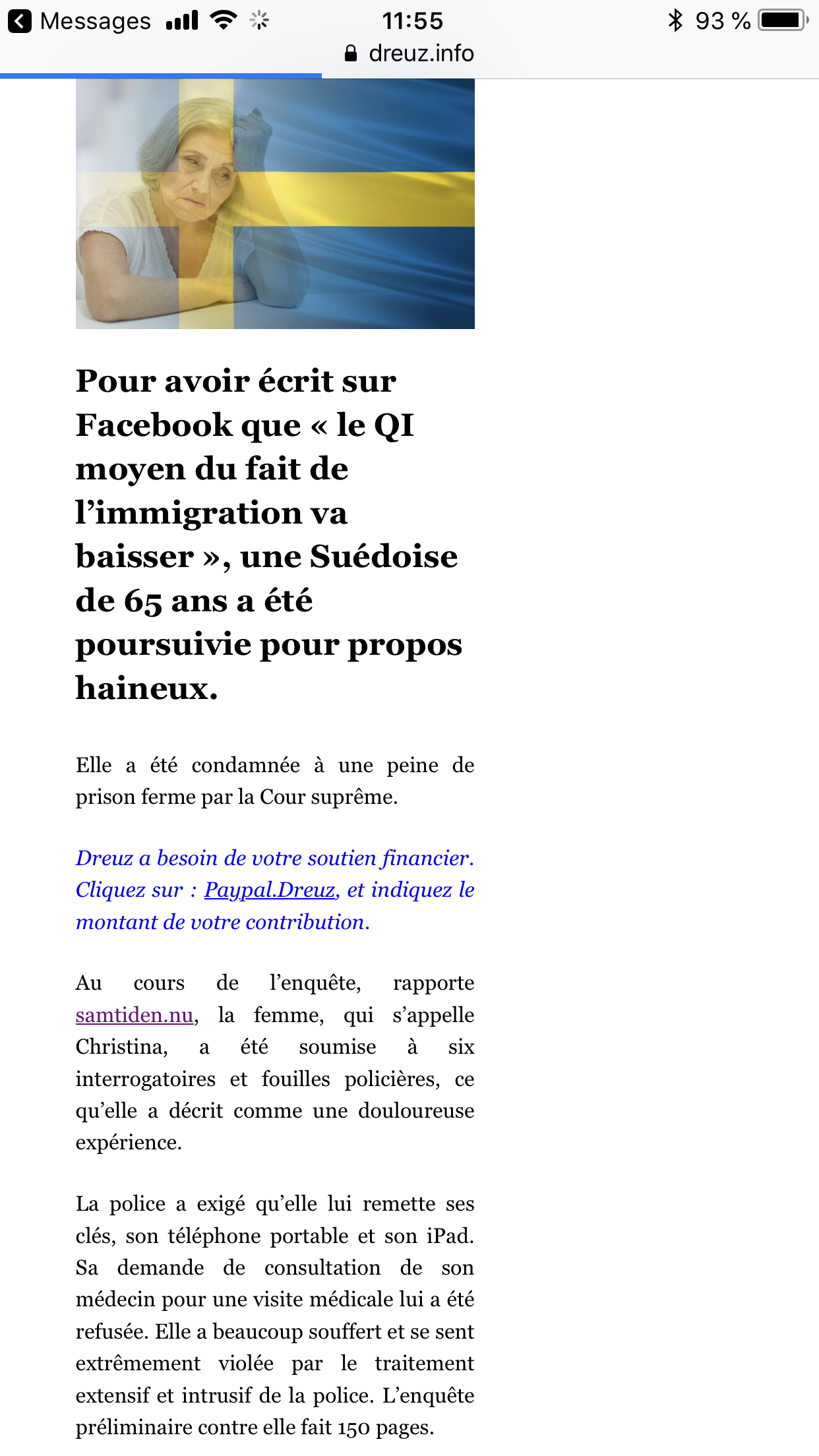 Un pays comme la Suède qui va mettre en prison une femme de 63 ans en mauvaise santé parce qu'elle a dit que le QI de son pays va baisser avec l'immigration?