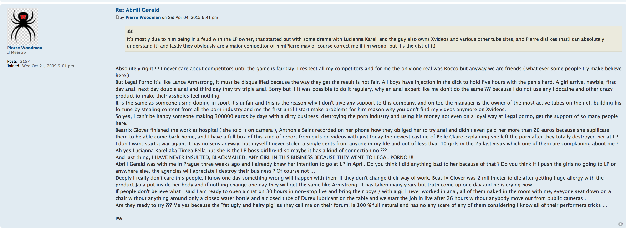 They blocked the Abrill Gerald topic yesterday on EBI ( only for the week-end in theory ) after I posted a message there about LP.