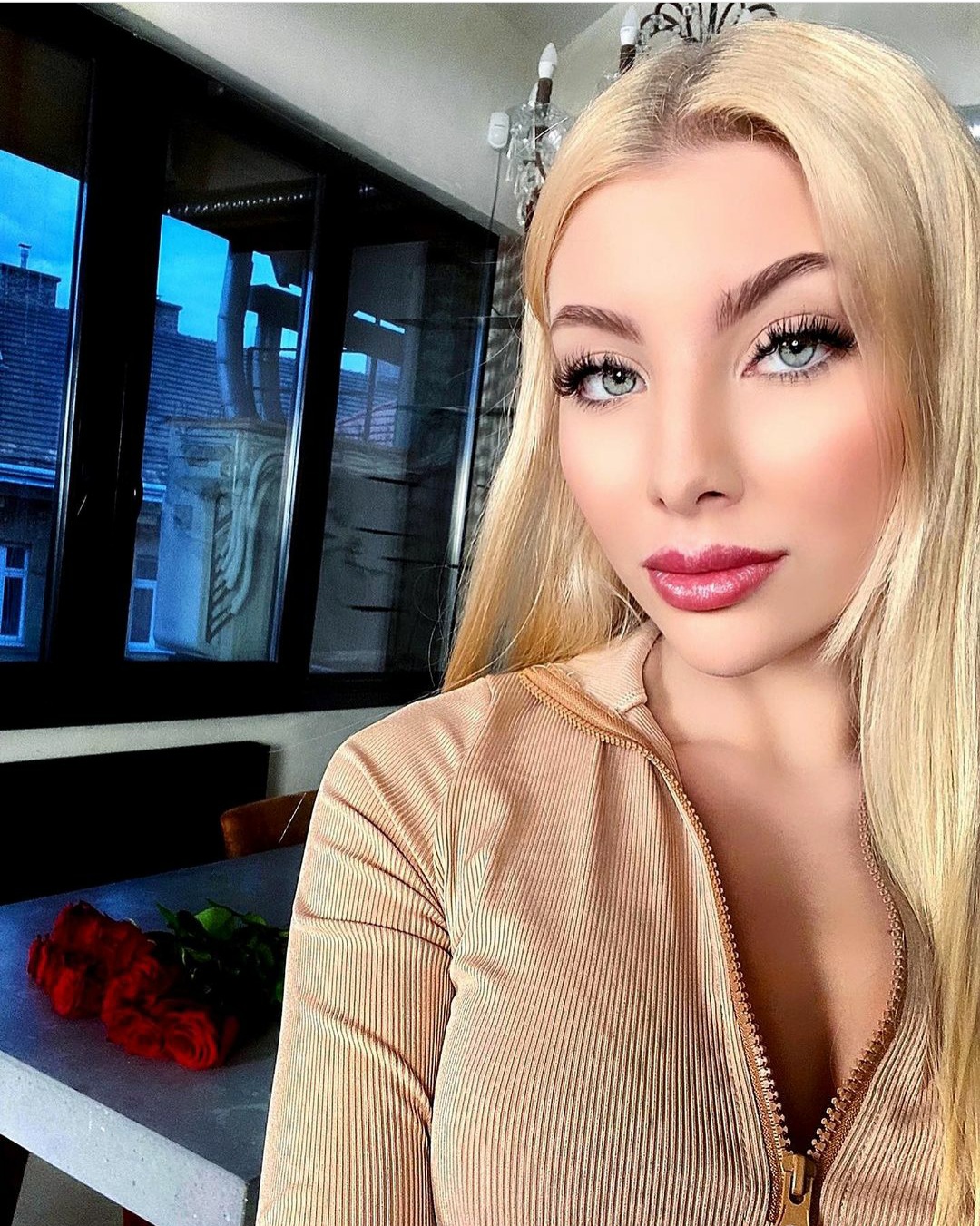 Sylvia's natural eyes are so much more beautiful than the contact lenses. Either way she looks great.