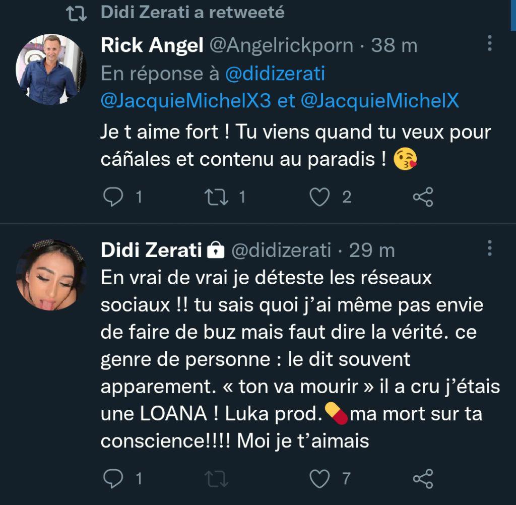 Didi est en bad trip sur son compte twitter, elle parle de suicide. Une rupture avec un certain Luka qui passe mal, visiblement.
