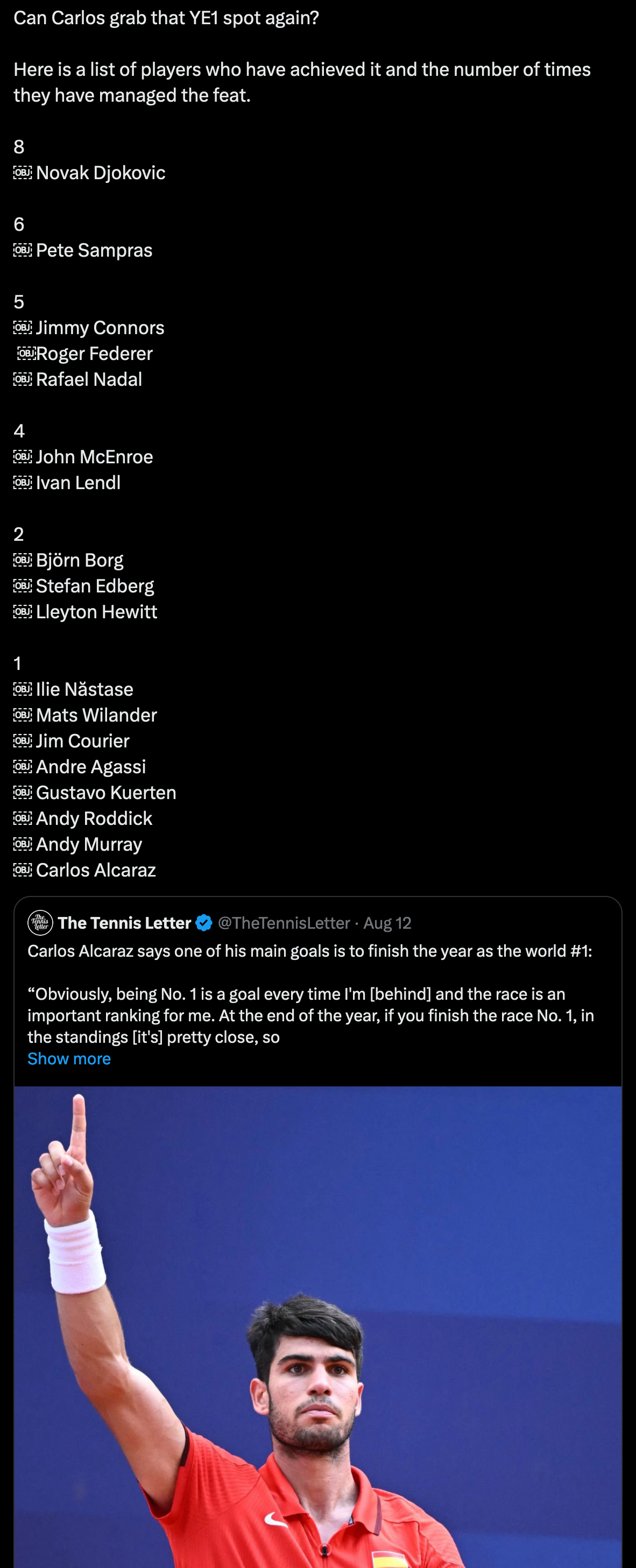 Alcaraz dream to end up the year at #1 place!