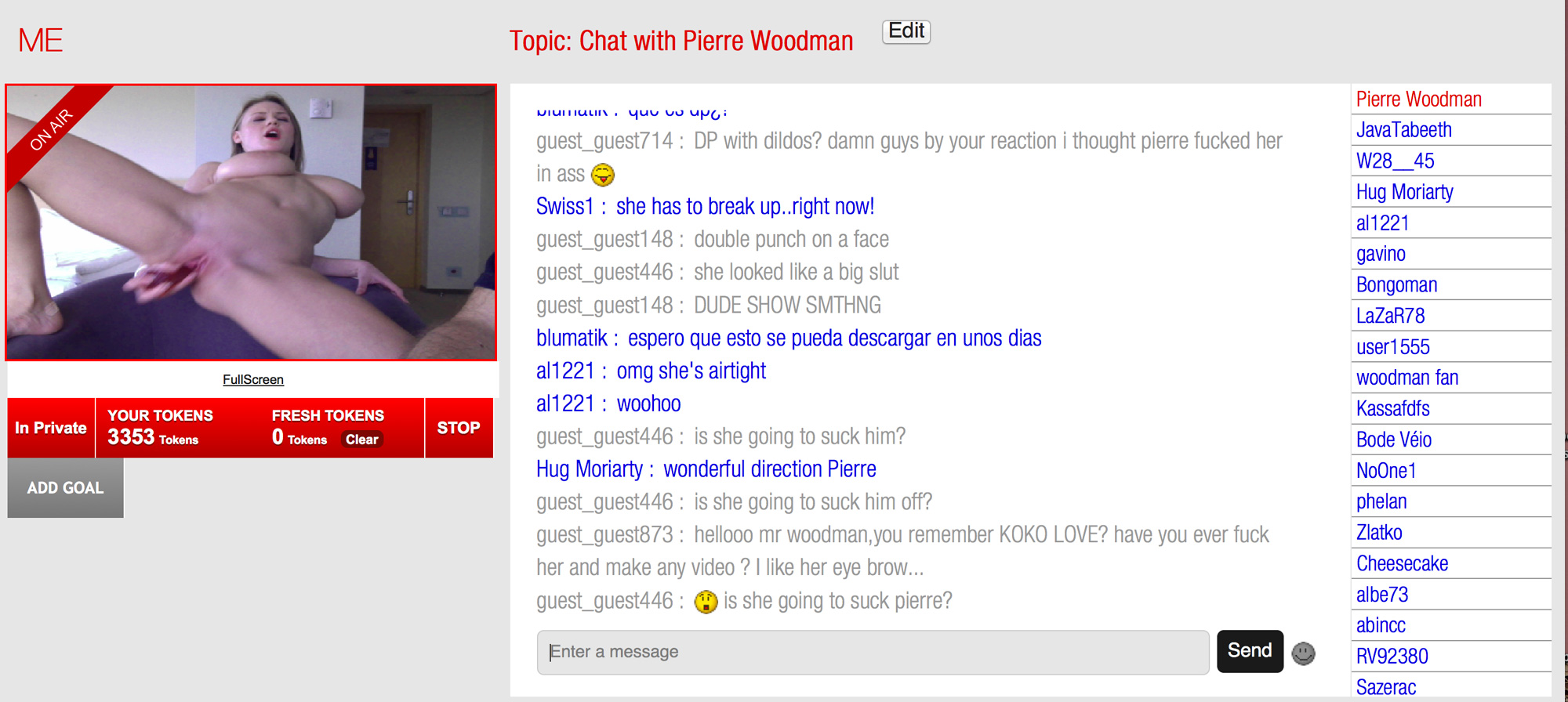 P.S. Pierre do you plan to post screenshot & chat text from Celine`s webcam show?