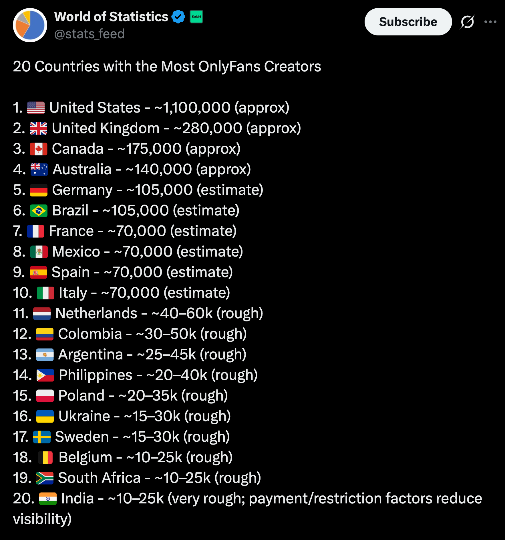Im from the United Kingdom 🇬🇧. Im shocked we are second. I guess alot Brit chicks are really doing onlyfans.