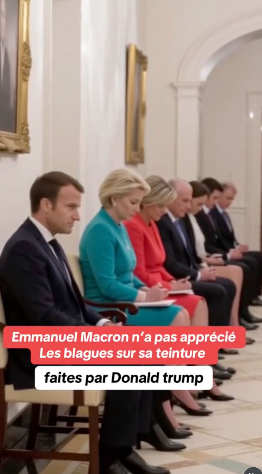 Trump s'est foutu de la gueule de Macron devant tous les autres en rigolant sur sa teinture de cheveux ce qui as mis notre petit président en mode salade de grimace pendant un moment ( censuré depuis sur la plupart des médias ) !!!