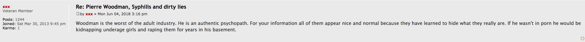 I read several accusations on the forum of Legal Porno saying that Mr. Woodman is coprophagous. And some more today !