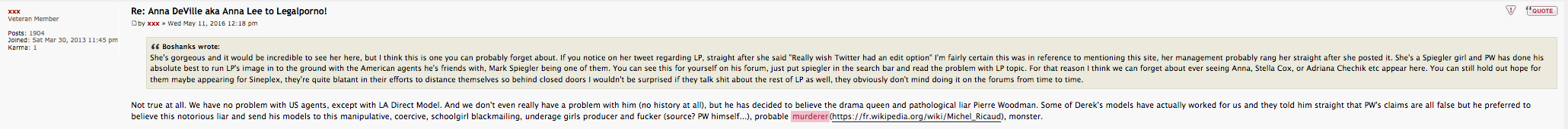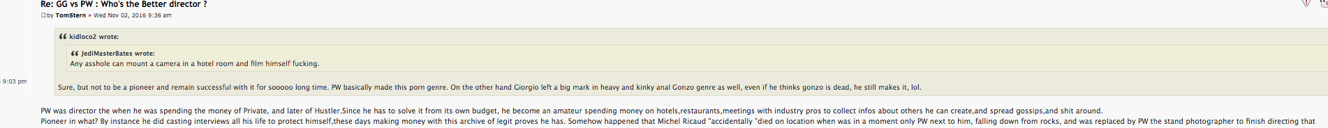 And about what is said in your post, you are right about the fact it's not good for LP but you can't say Ricardo is not part of Legal Porno forum and doesn't have the support of the boss.