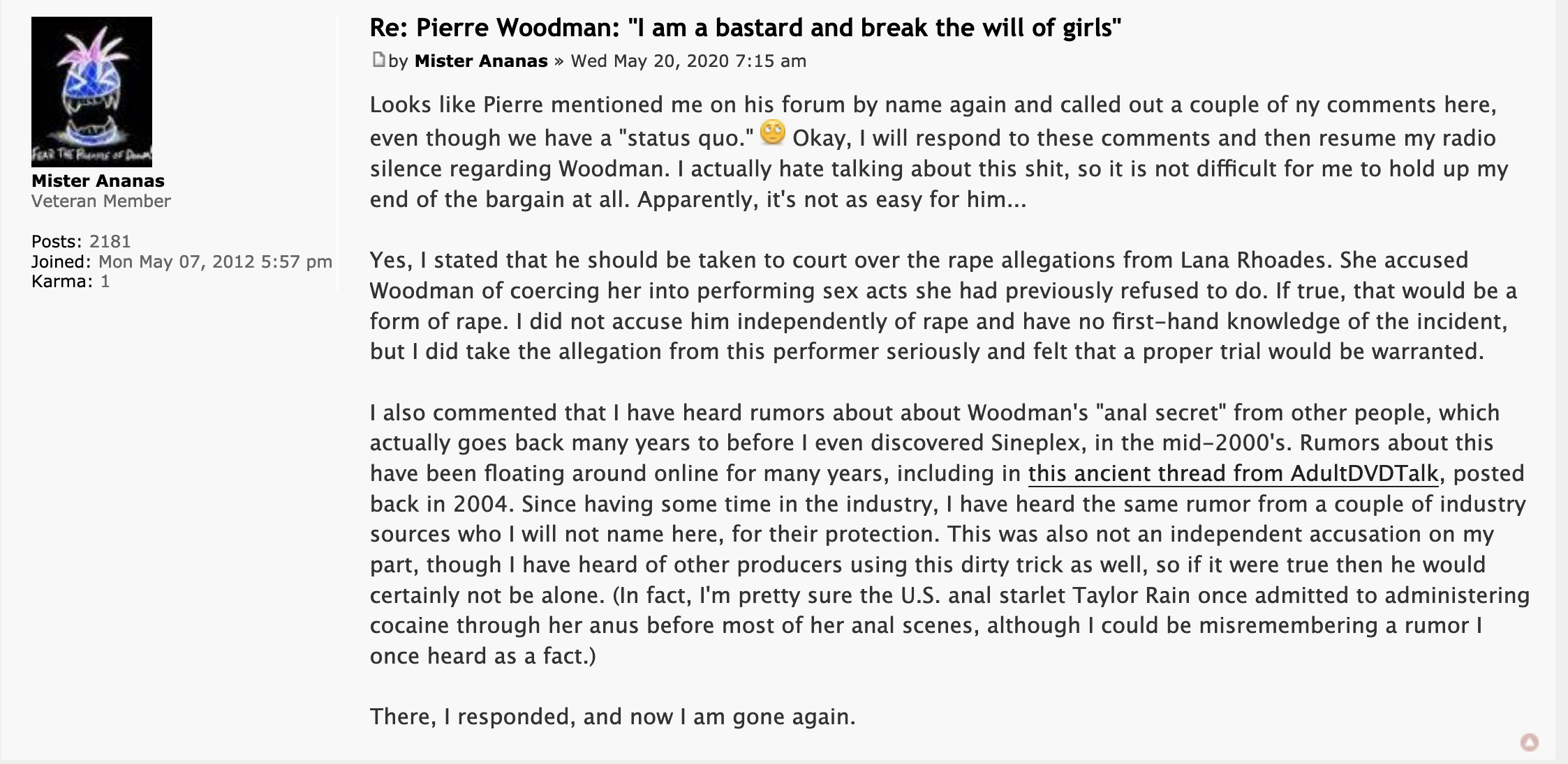 First of all show me where Porno Dan mentionned my name ???