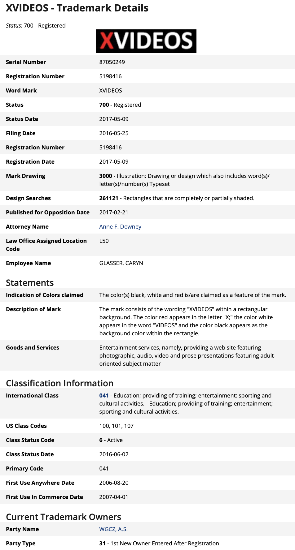 But the trade mark Xvideos it's WGCZ